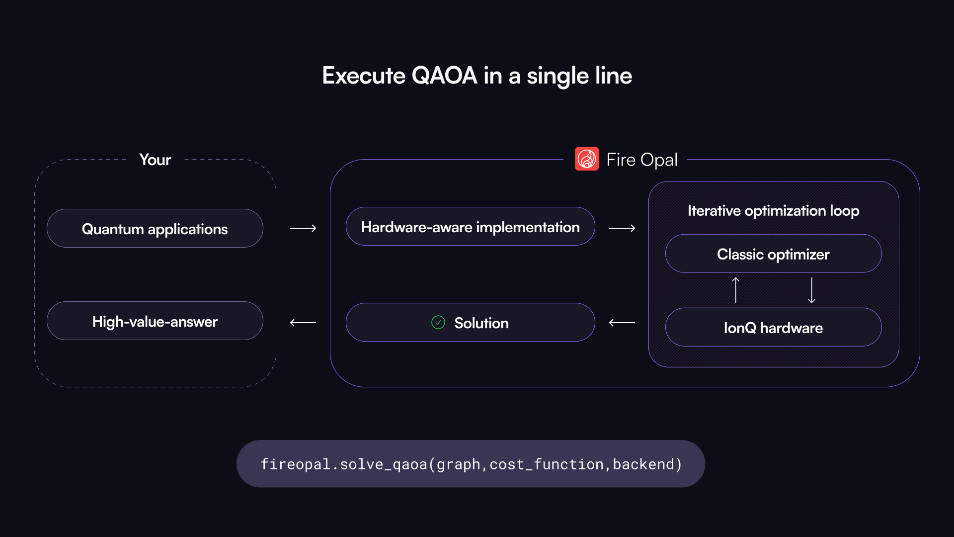Q-CTRL and IonQ are reducing the barriers to achieving true commercial value from the most advanced quantum processors, natively integrating Fire Opal’s Optimization Solver directly into IonQ Quantum Cloud as a single, fully configured, easy-to-use function. Now any end user can focus on their optimization problem, allowing Fire Opal to automatically handle all aspects of execution on real hardware to achieve the most valuable results.
